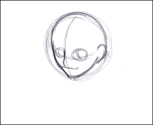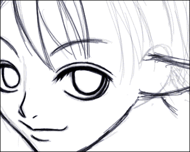 4枚目倍率100%。描く時はさらに拡大。輪郭と耳らへんが第一段階。
