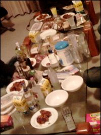 左:飯テーブル。カオス。