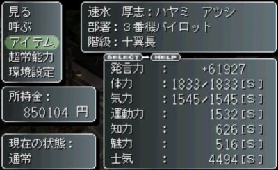 最終ステータス。体力・気力は下がらなくていいんですが、