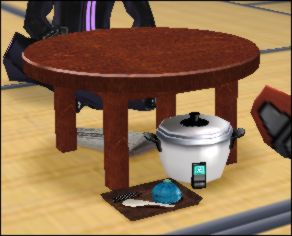 炊飯器・新聞紙とか木目とかなかなか凝ってるちゃぶ台ですが、