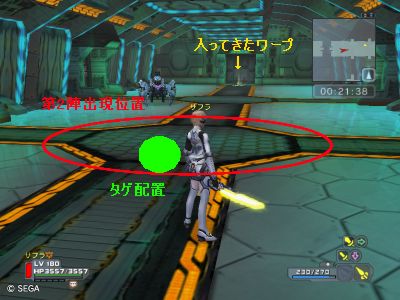 入ってきたワープから見て、2つある床模様のサークル奥の方が第2陣の、