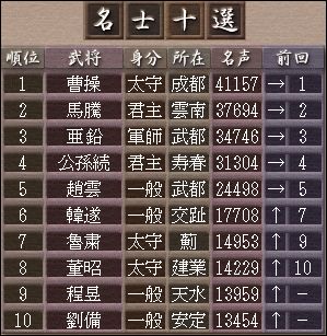 奇数年の1月発生。北斗と南斗が<名声>十傑を選ぶ。
