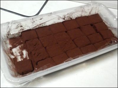 「カットしてココアパウダーをまぶして出来上がり☆」