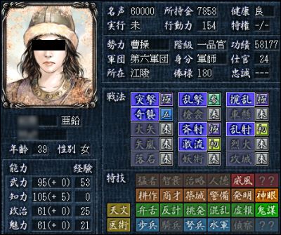 天文/医術/神眼/鬼謀と特技はそこそこでしょうか。