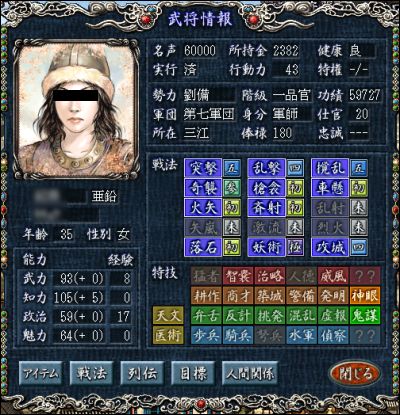 医術で戦法p温存して妖術で混乱入れたら、後は他武将に任せればいいんですが、