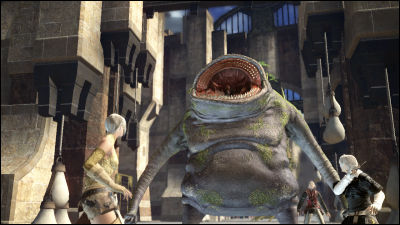 暴れだすグーブーに逃げ惑う民衆、立ち向かう自キャラとヒュラオの彼。
