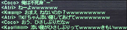 体調不良でここさんログインして小言いってたらKちゃん加勢に来て添い寝薦めたらカオさん来て混ぜるな危険。